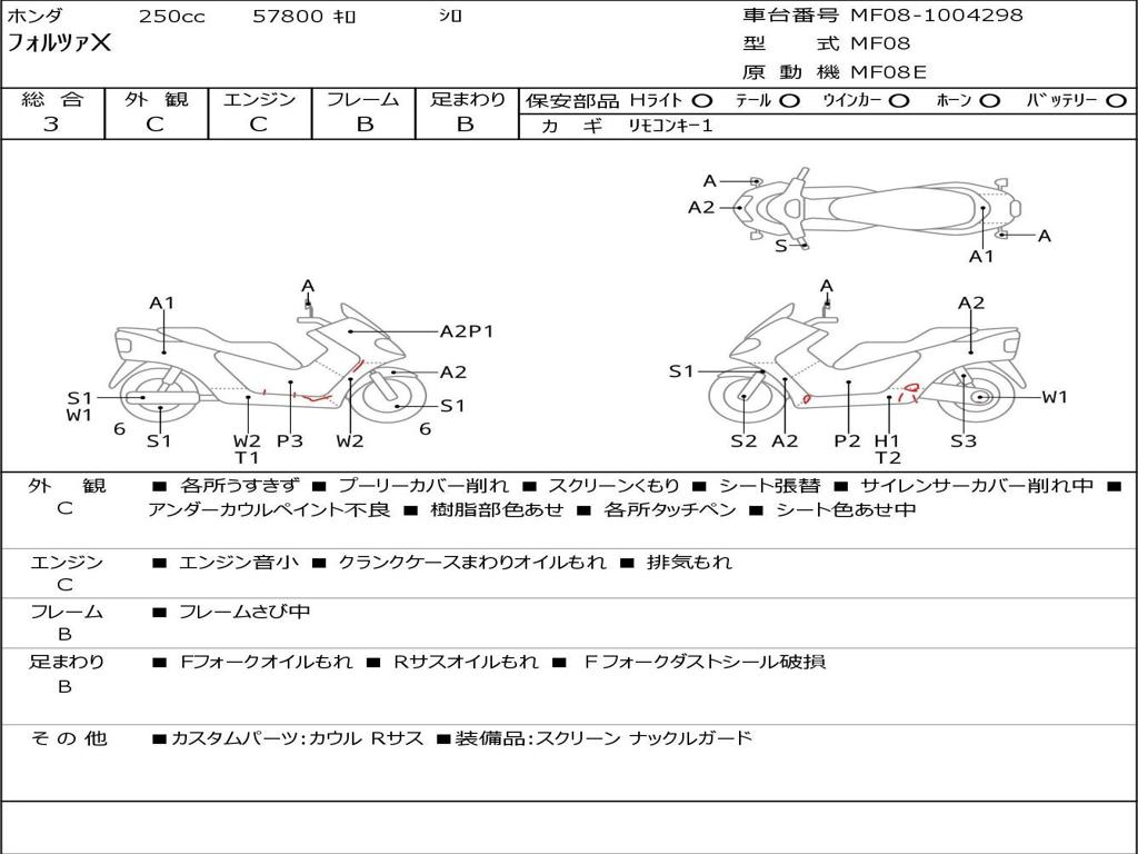 | Номер рамы / VIN | MF08-1004298 |