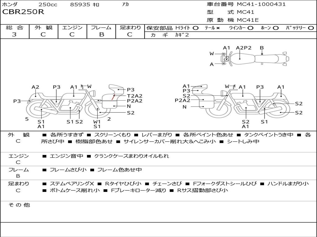 | Номер рамы / VIN | MC41-1000431 |