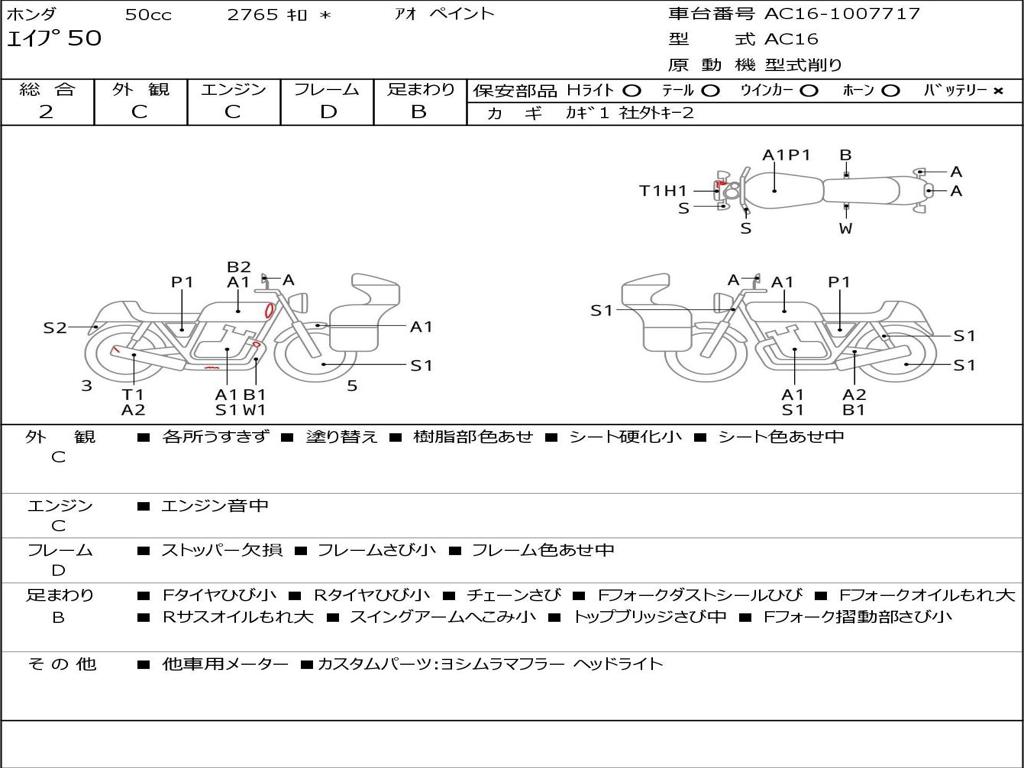 | Номер рамы / VIN | AC16-1007717 |