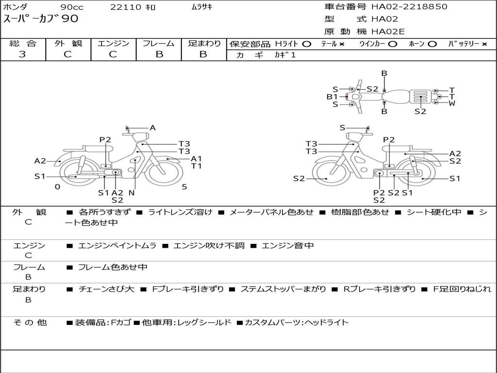| Номер рамы / VIN | HA02-2218850 |