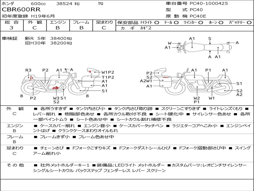 | Номер рамы / VIN | PC40-1000425 |