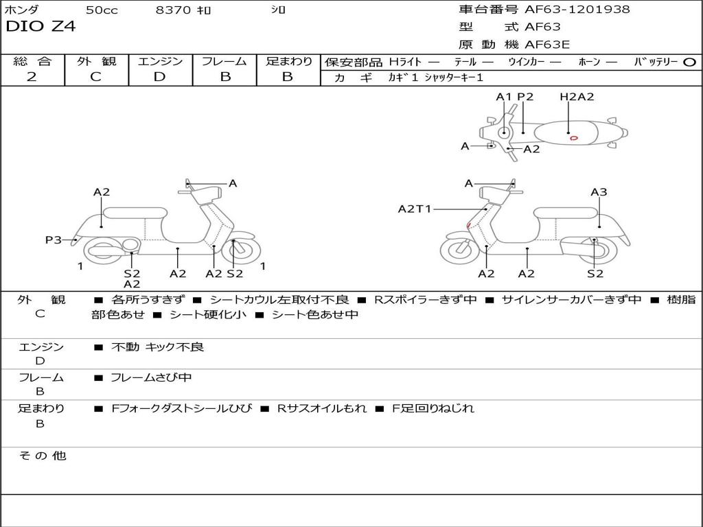 | Номер рамы / VIN | AF63-1201938 |