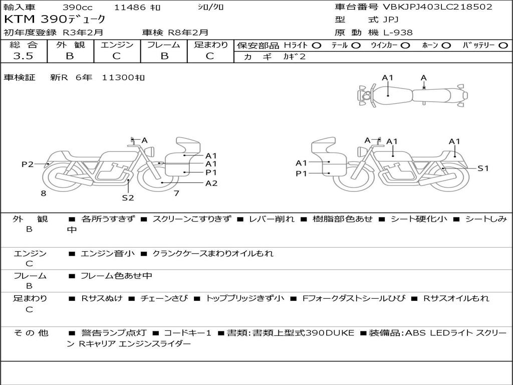 | Номер рамы / VIN | VBKJPJ403LC218502 |