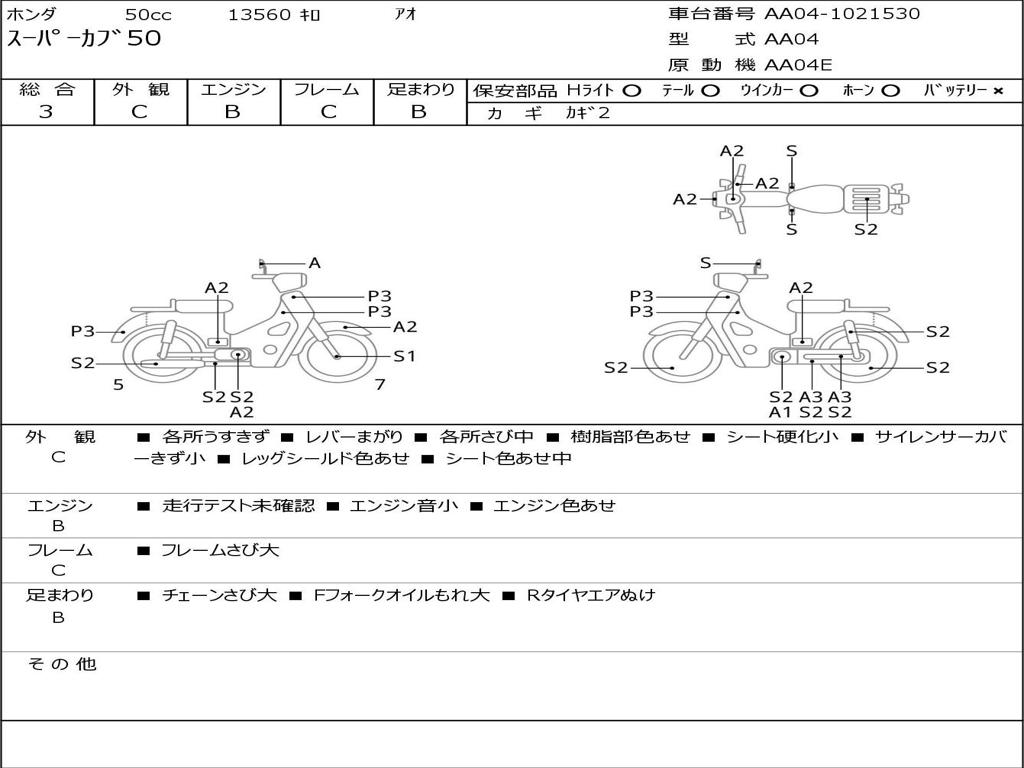 | Номер рамы / VIN | AA04-1021530 |