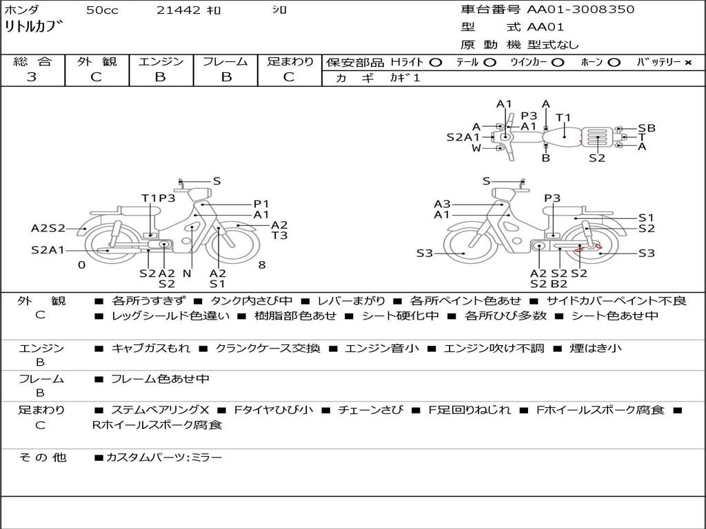 | Номер рамы / VIN | AA01-3008350 |