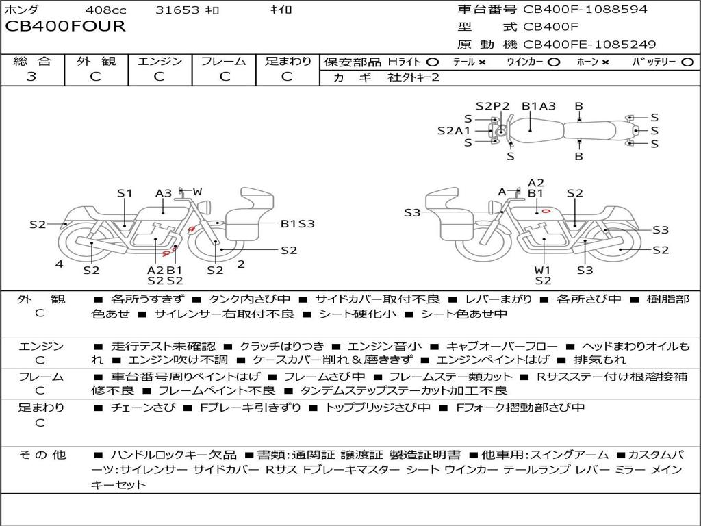 | Номер рамы / VIN | CB400F-1088594 |