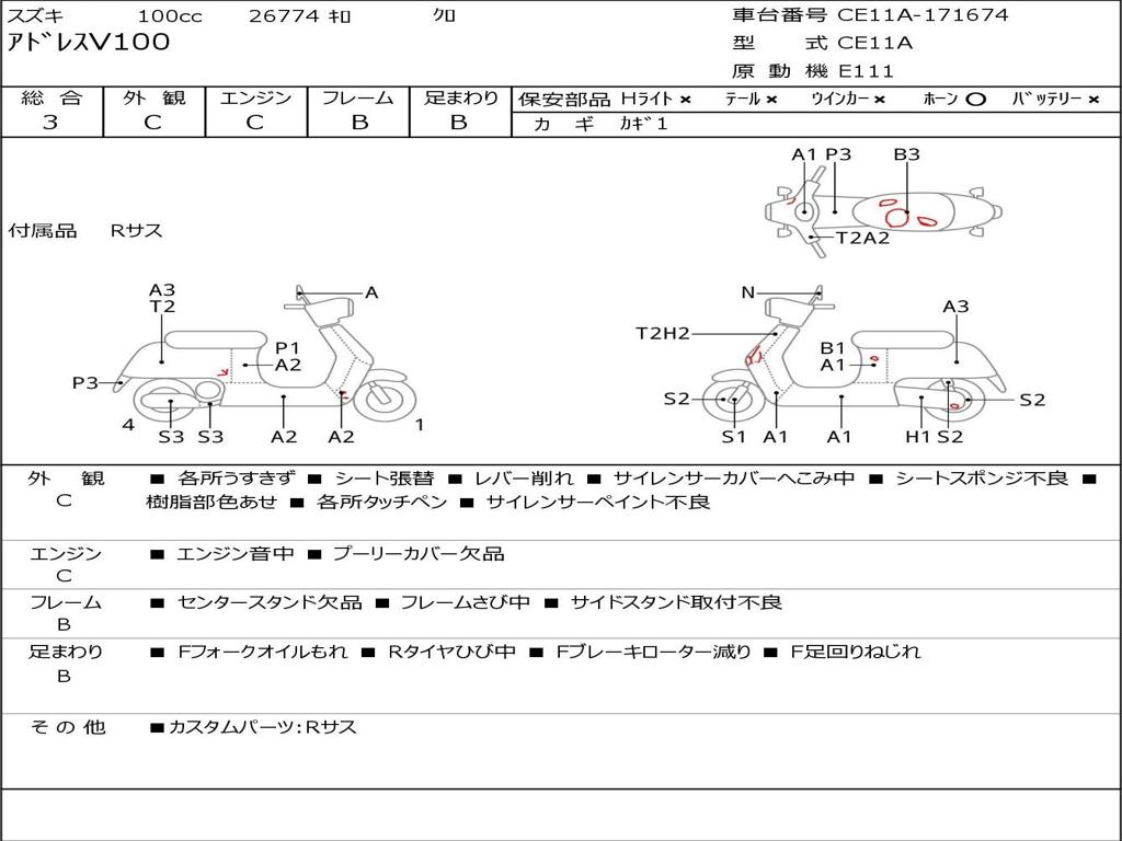 | Номер рамы / VIN | CE11A-171674 |