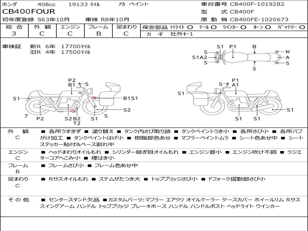 | Номер рамы / VIN | CB400F-1019282 |
