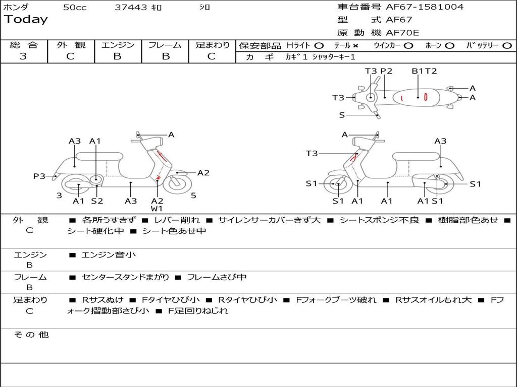 | Номер рамы / VIN | AF67-1581004 |