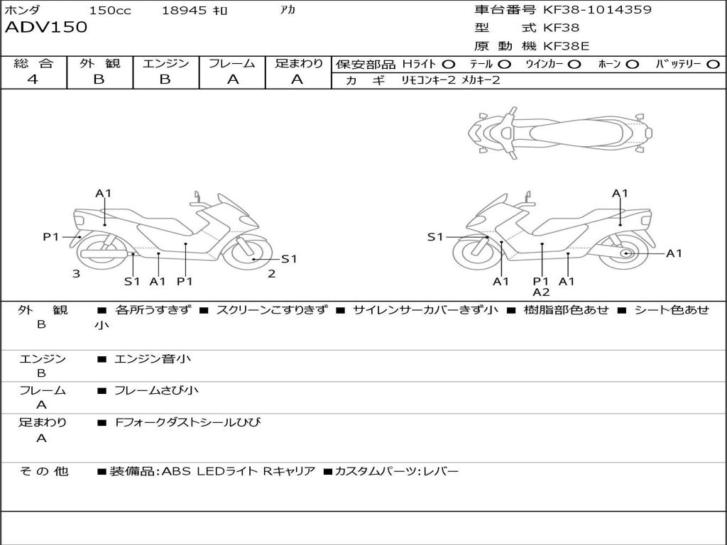 | Номер рамы / VIN | KF38-1014359 |