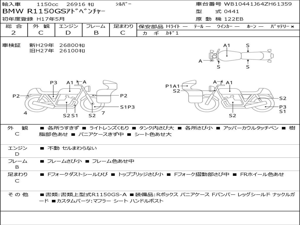 | Номер рамы / VIN | WB10441J64ZH61359 |