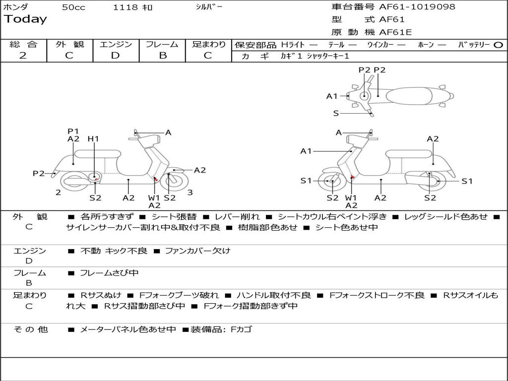 | Номер рамы / VIN | AF61-1019098 |