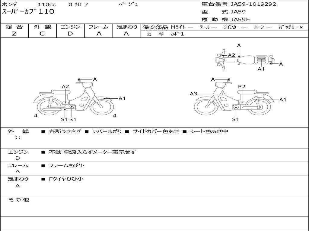 | Номер рамы / VIN | JA59-1019292 |