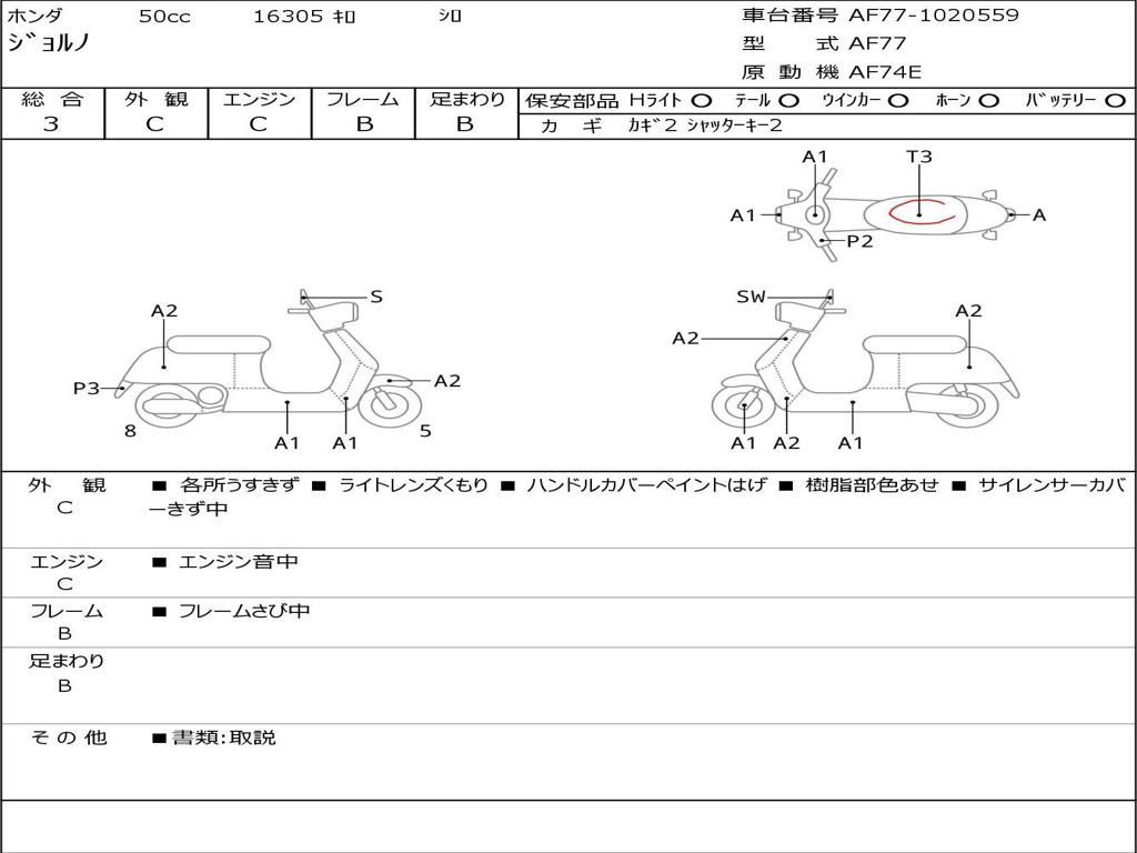 | Номер рамы / VIN | AF77-1020559 |
