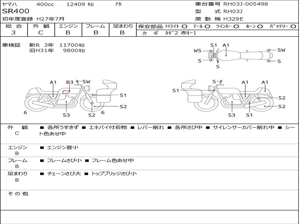 | Номер рамы / VIN | RH03J-005498 |