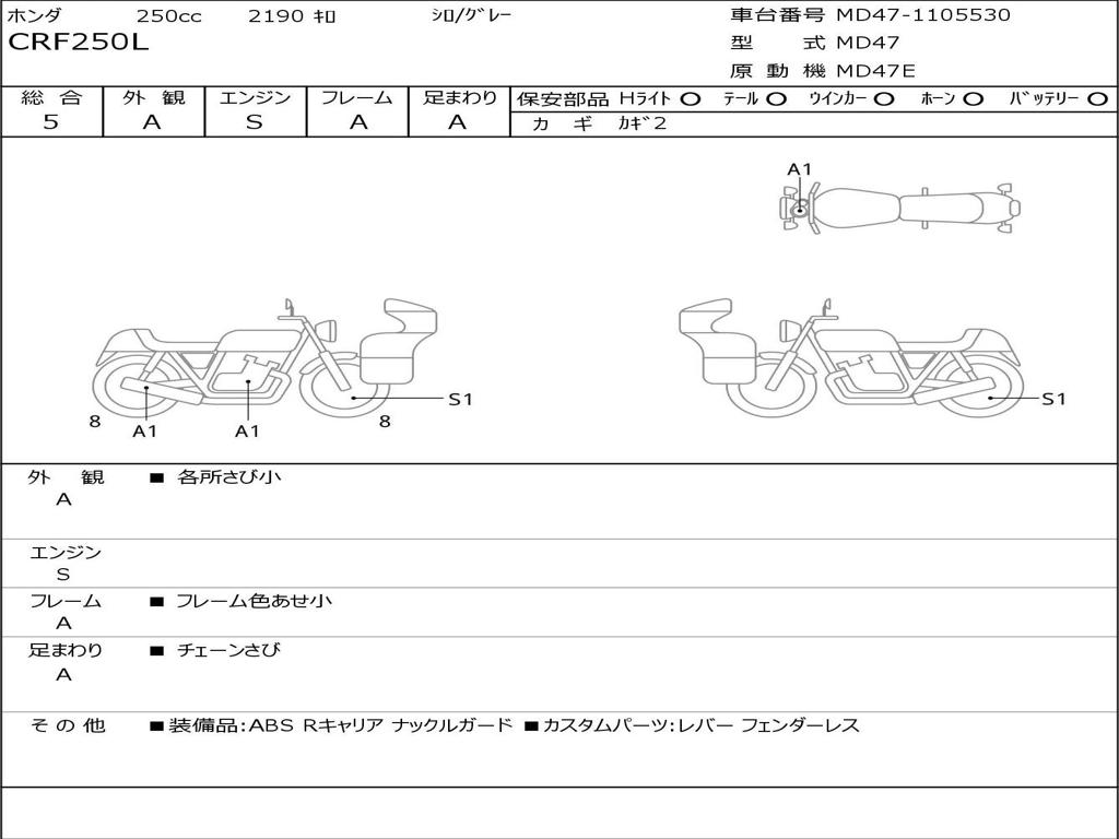 | Номер рамы / VIN | MD47-1105530 |