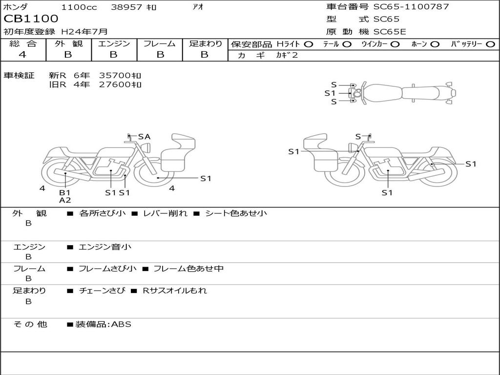 | Номер рамы / VIN | SC65-1100787 |