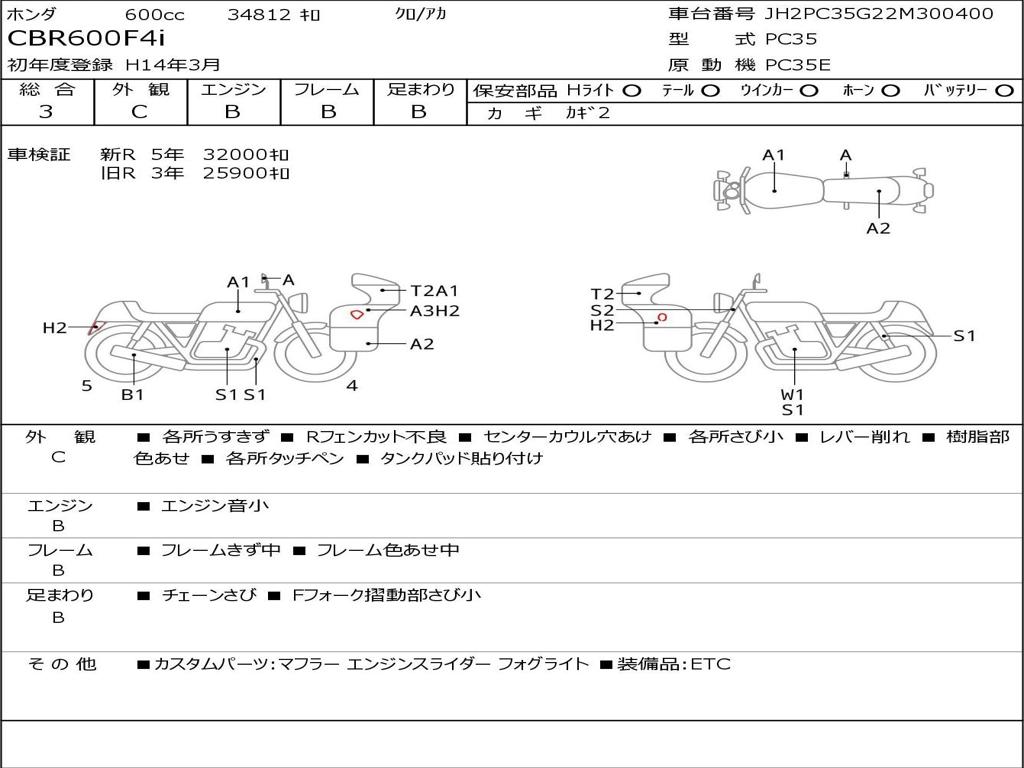 | Номер рамы / VIN | JH2PC35G22M300400 |