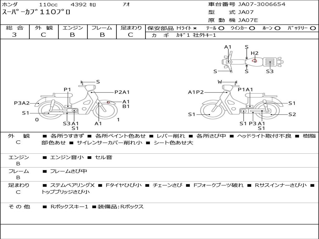 | Номер рамы / VIN | JA07-3006654 |