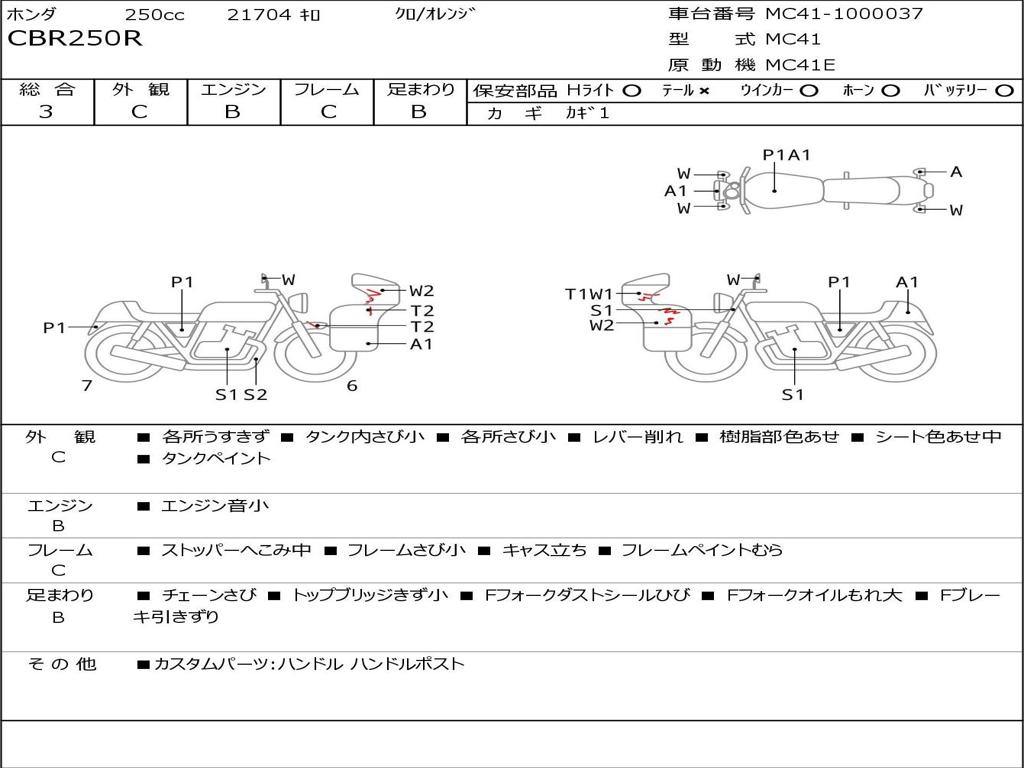 | Номер рамы / VIN | MC41-1000037 |
