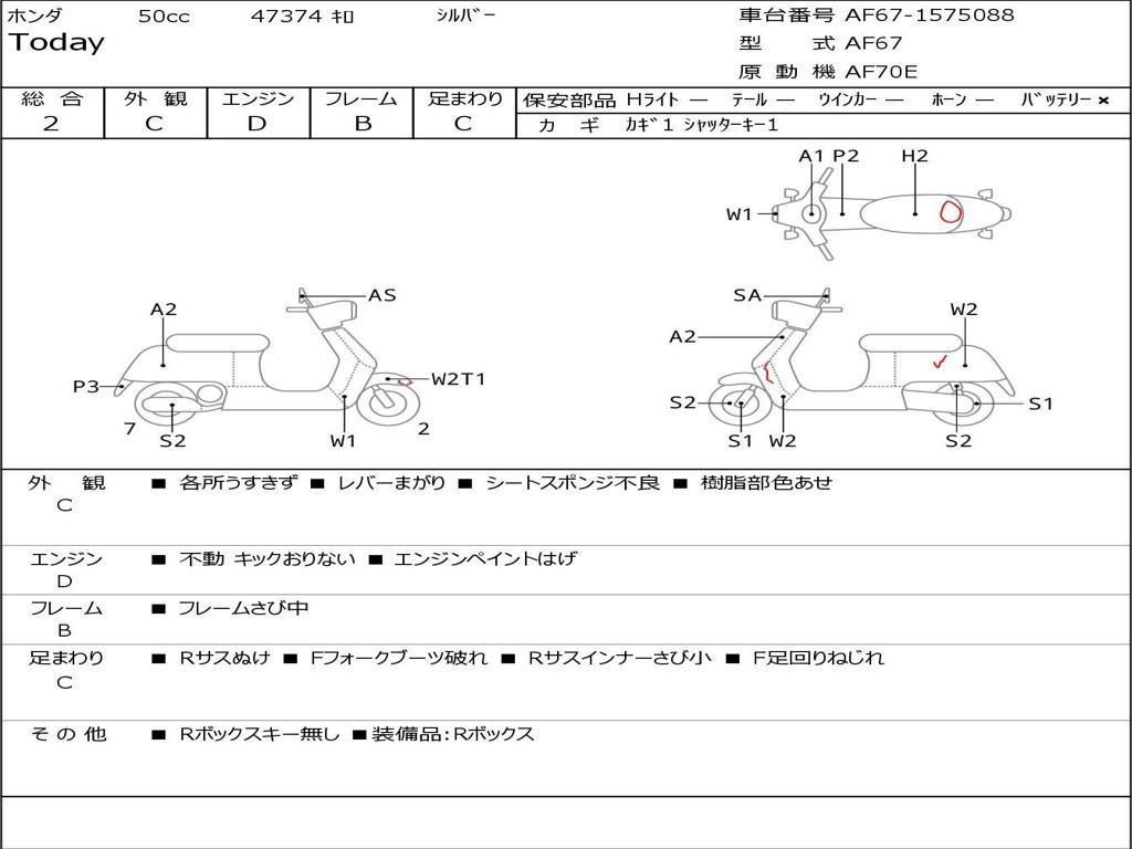 | Номер рамы / VIN | AF67-1575088 |