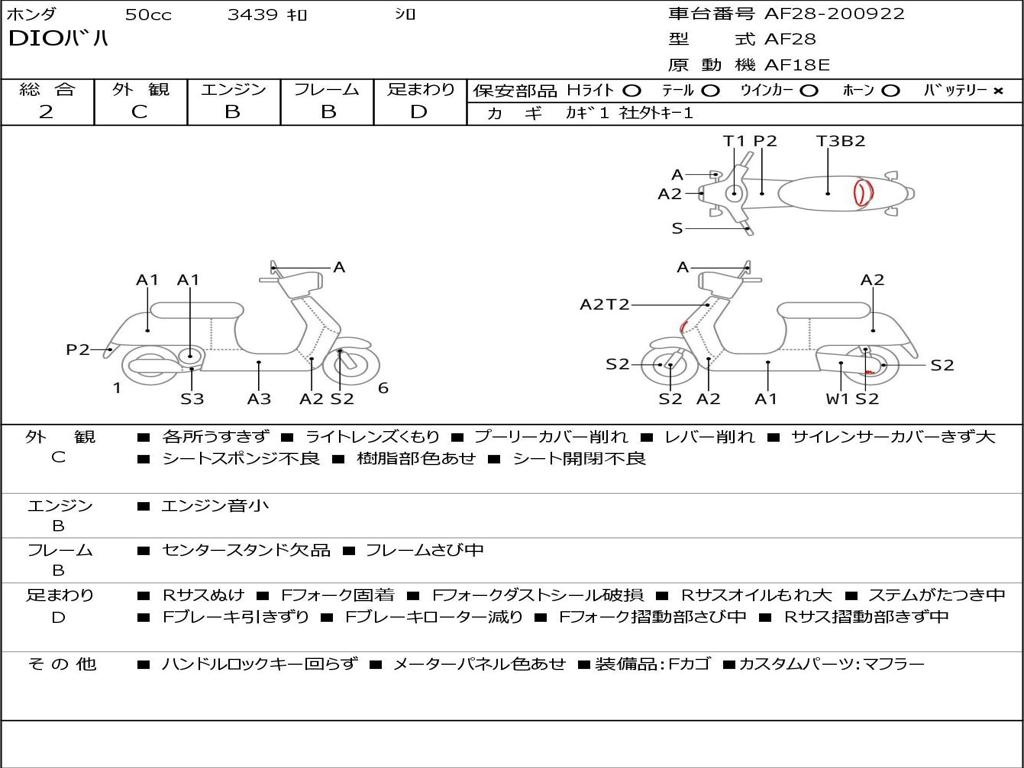 | Номер рамы / VIN | AF28-2000922 |
