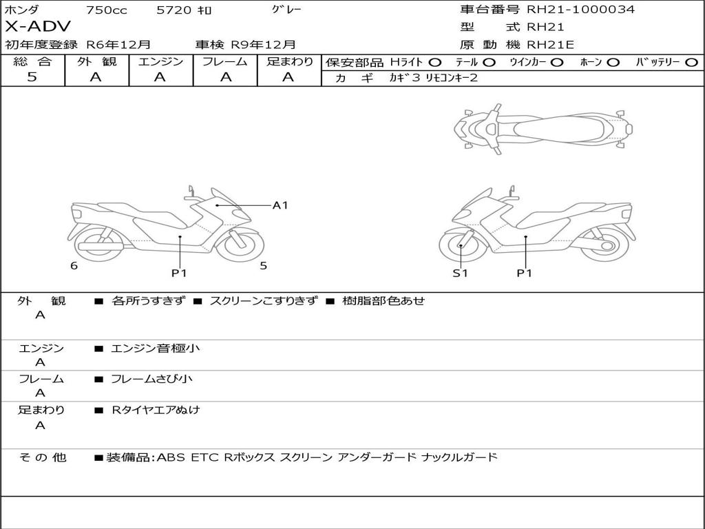 | Номер рамы / VIN | RH21-1000034 |