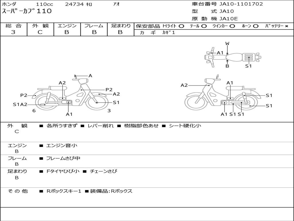 | Номер рамы / VIN | JA10-1101702 |