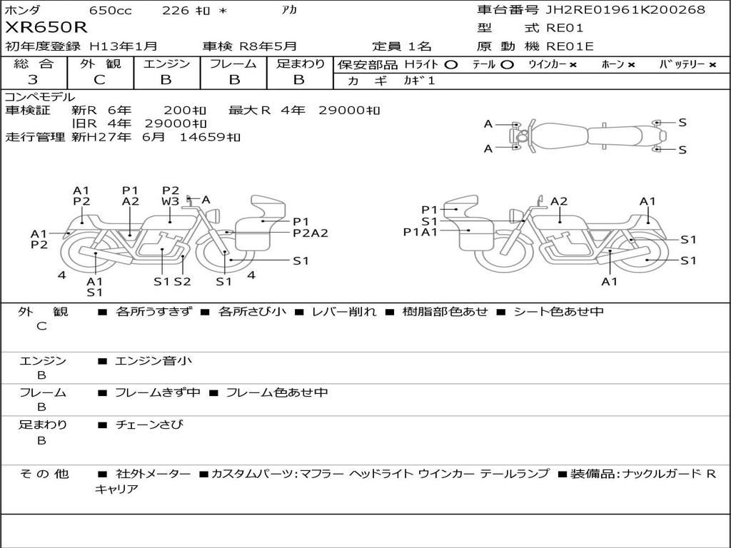 | Номер рамы / VIN | JH2RE01961K200268 |