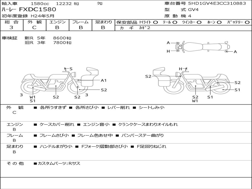 | Номер рамы / VIN | 5HD1GV4E3CC310883 |