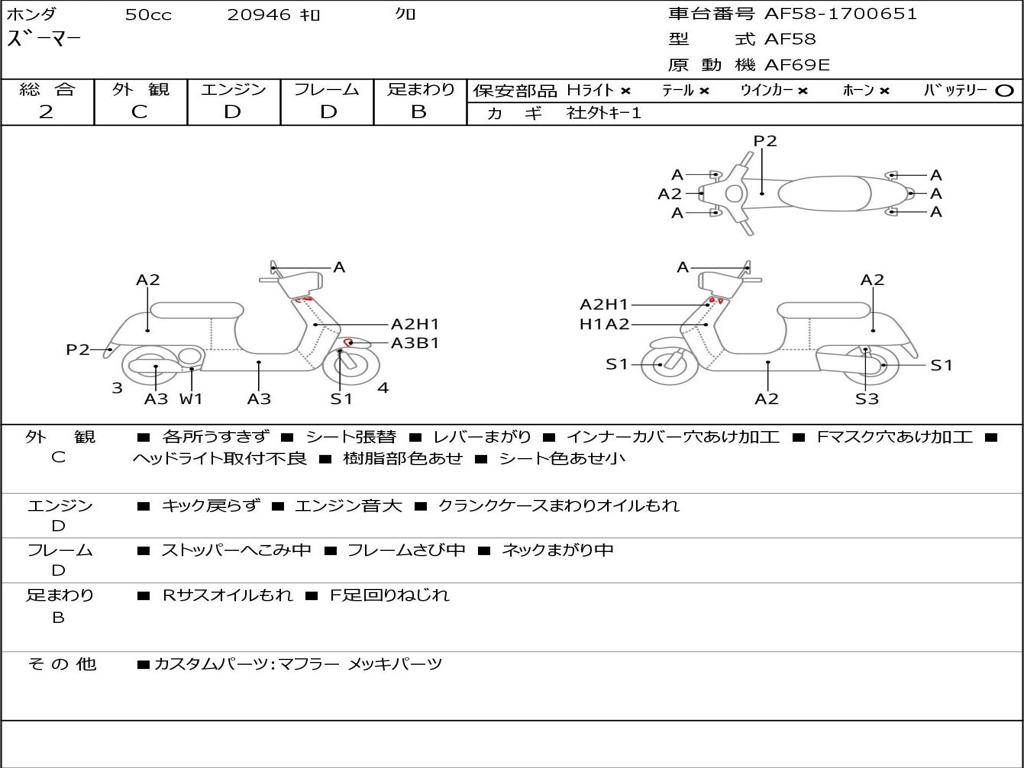 | Номер рамы / VIN | AF58-1700651 |
