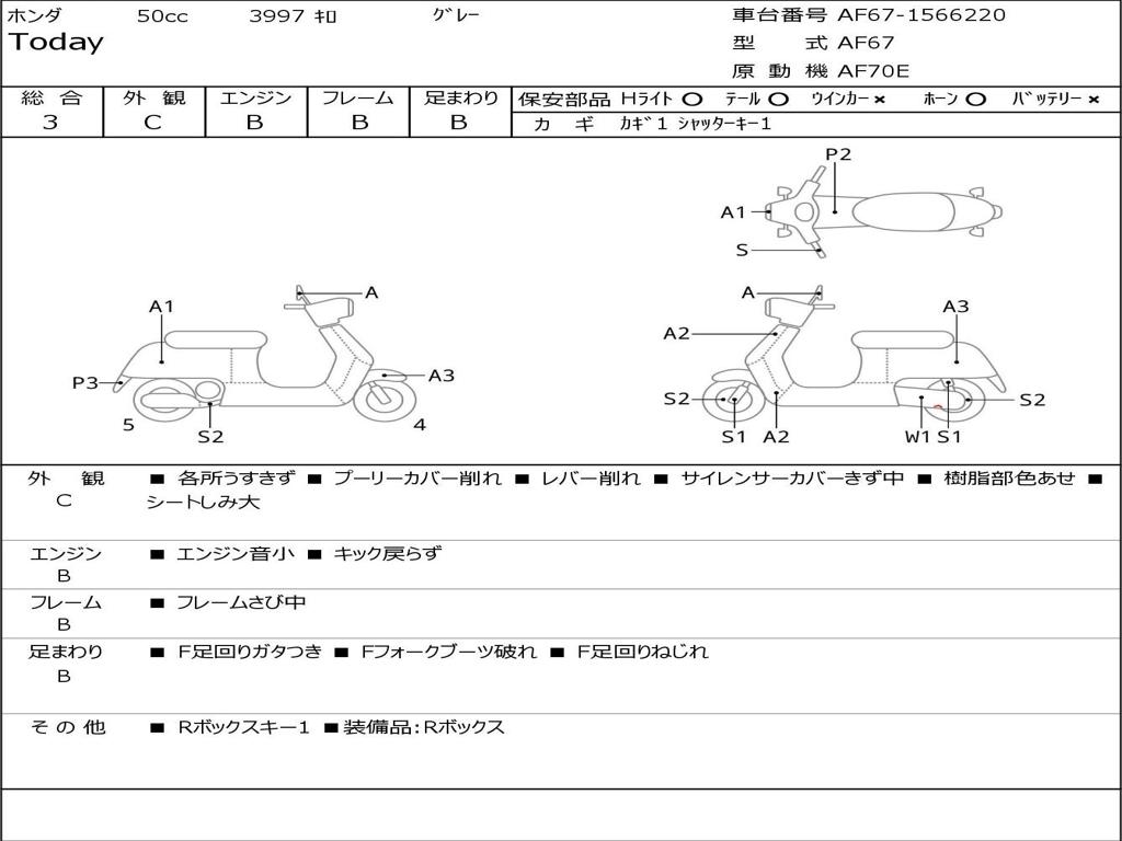 | Номер рамы / VIN | AF67-1566220 |