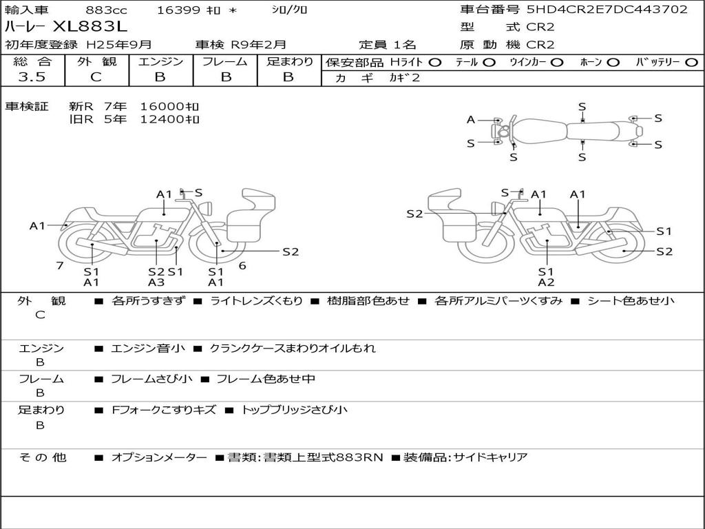 | Номер рамы / VIN | 5HD4CR2E7DC443702 |
