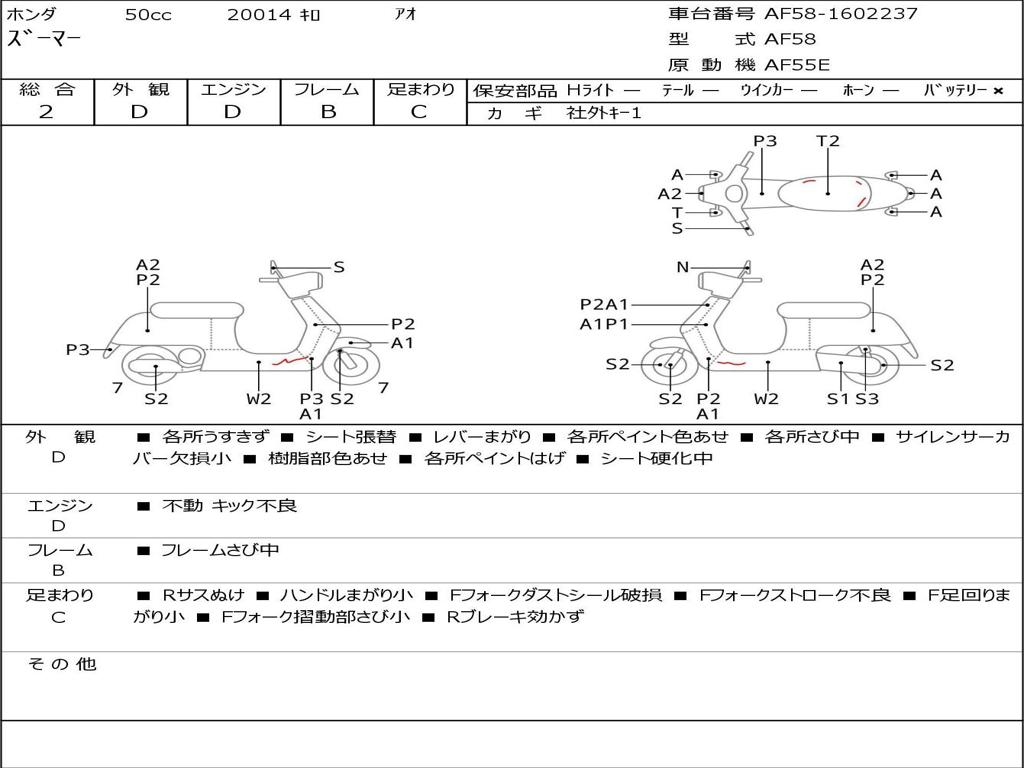 | Номер рамы / VIN | AF58-1602237 |