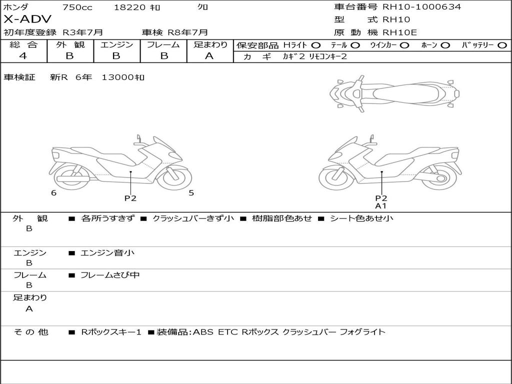 | Номер рамы / VIN | RH10-1000634 |