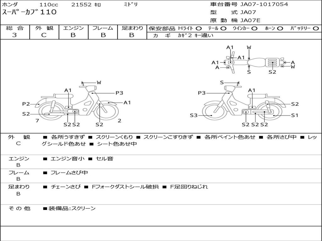 | Номер рамы / VIN | JA07-1017054 |