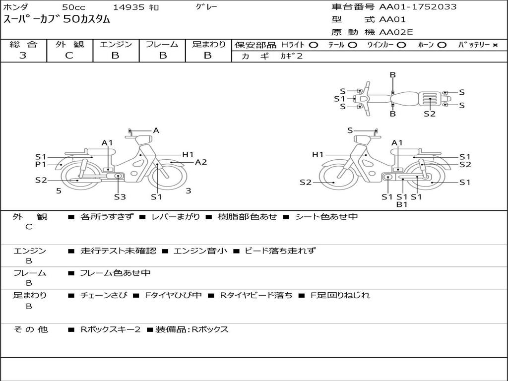 | Номер рамы / VIN | AA01-1752033 |
