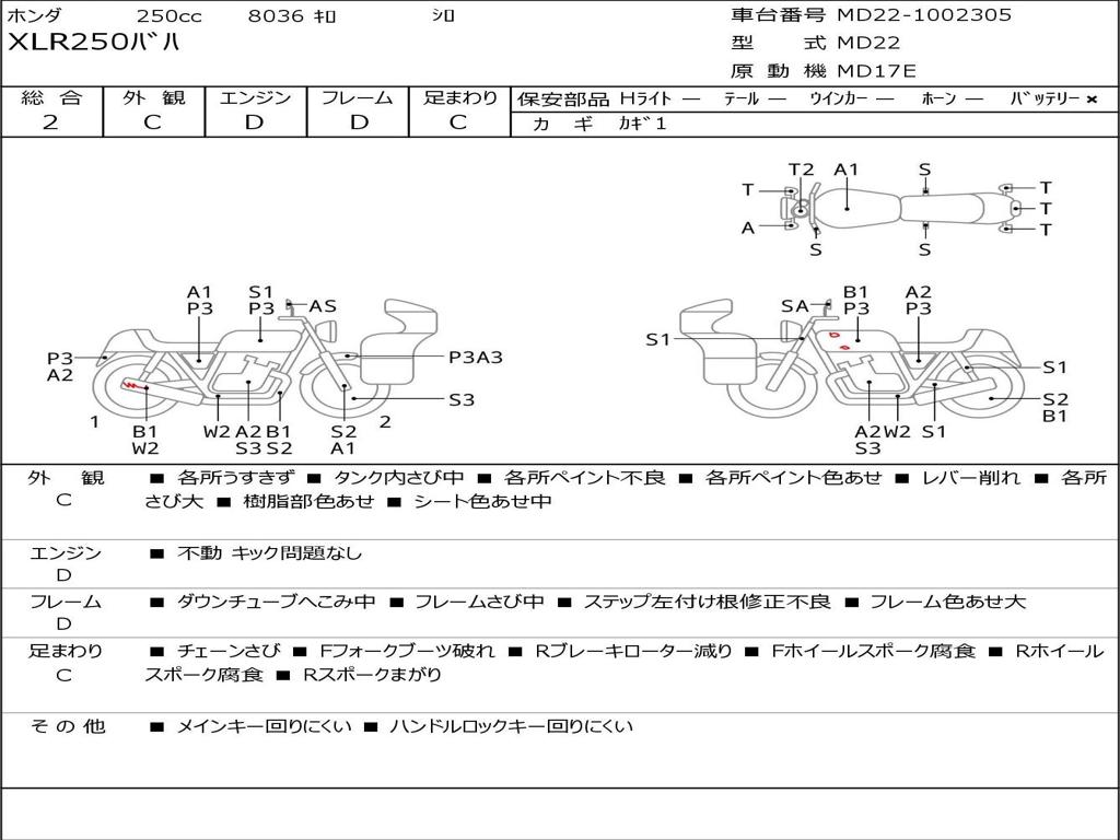 | Номер рамы / VIN | MD22-1002305 |