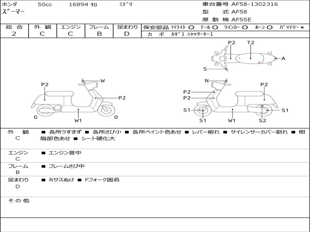 | Номер рамы / VIN | AF58-1302316 |
