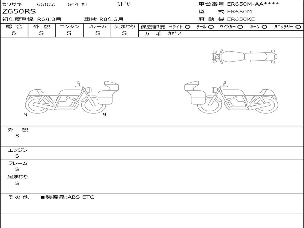 | Номер рамы / VIN | ER650M-AA9670 |