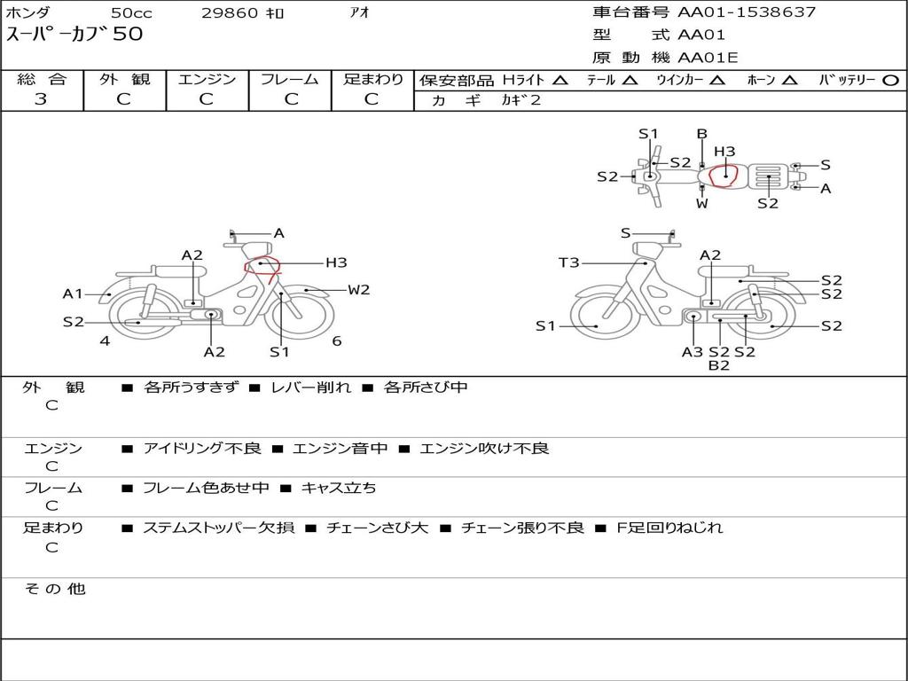 | Номер рамы / VIN | AA01-1538637 |
