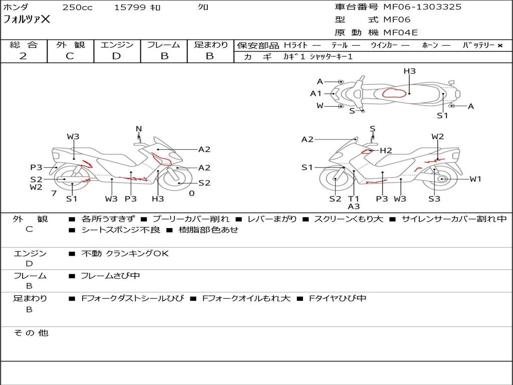 | Номер рамы / VIN | MF06-1303325 |