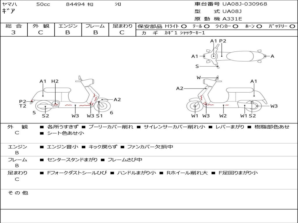 | Номер рамы / VIN | UA08J-030968 |