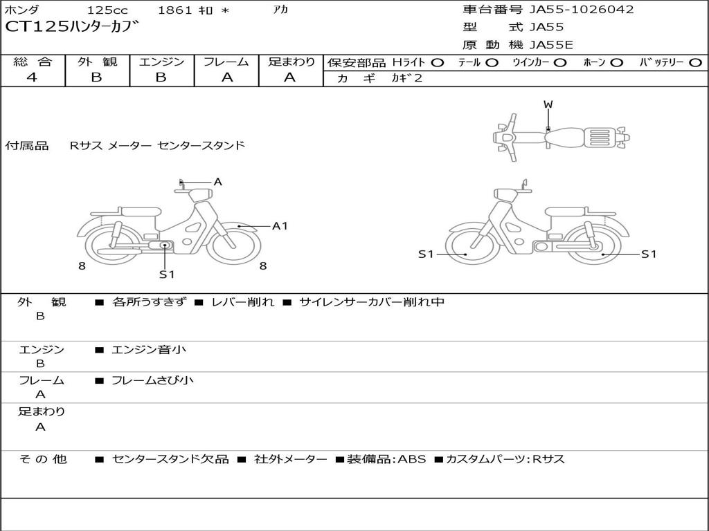 | Номер рамы / VIN | JA55-1026042 |