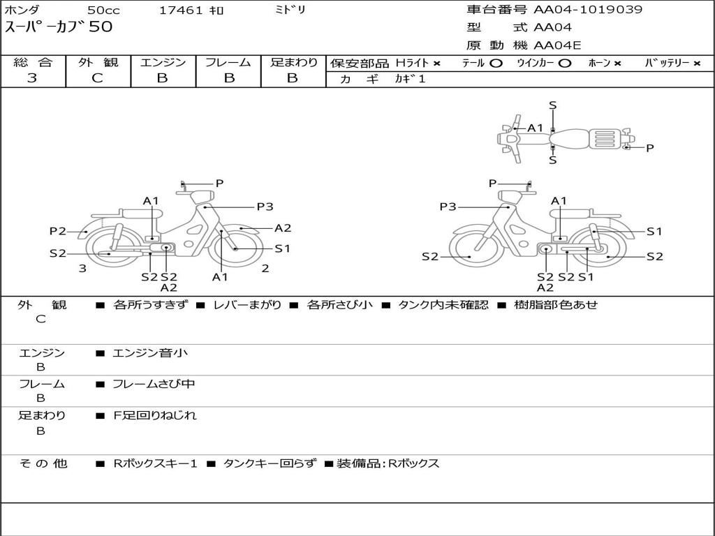 | Номер рамы / VIN | AA04-1019039 |