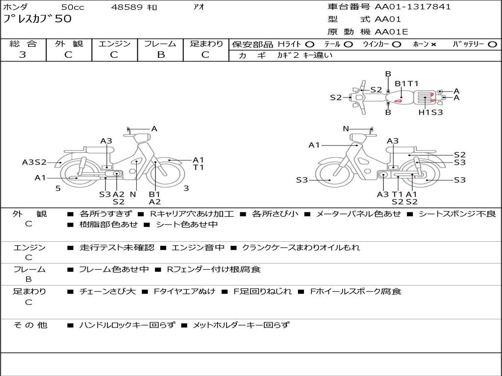 | Номер рамы / VIN | AA01-1317841 |
