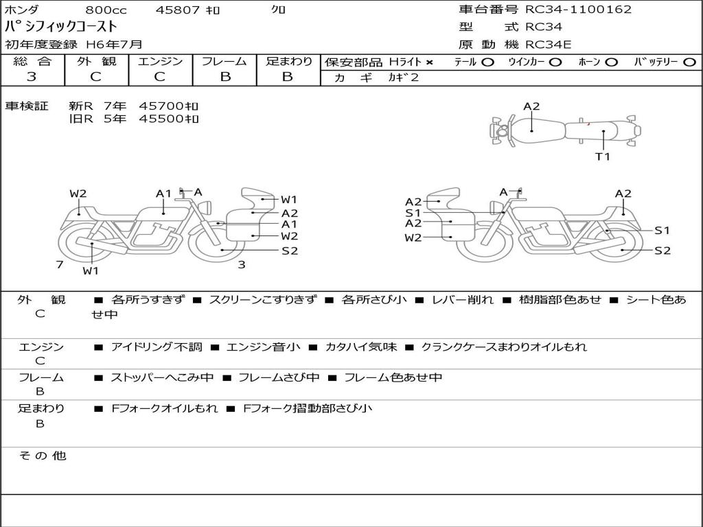 | Номер рамы / VIN | RC34-1100162 |