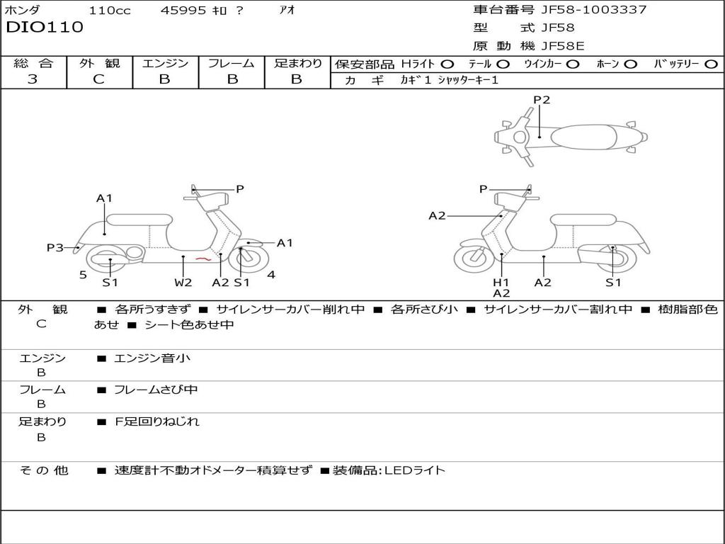 | Номер рамы / VIN | JF58-1003337 |