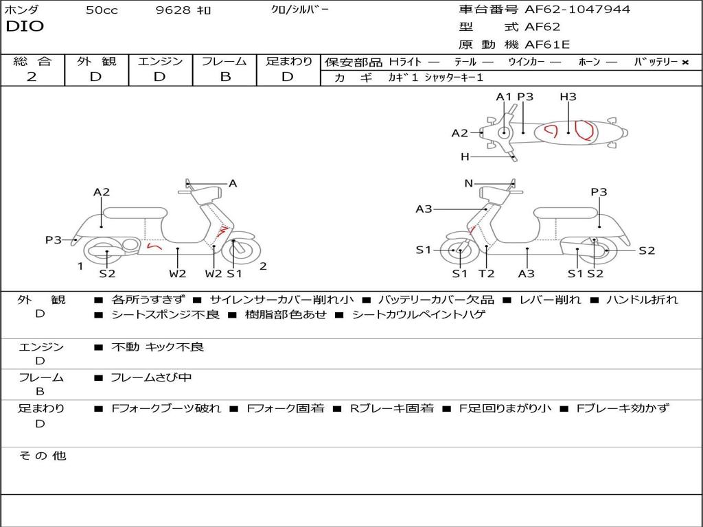 | Номер рамы / VIN | AF62-1047944 |