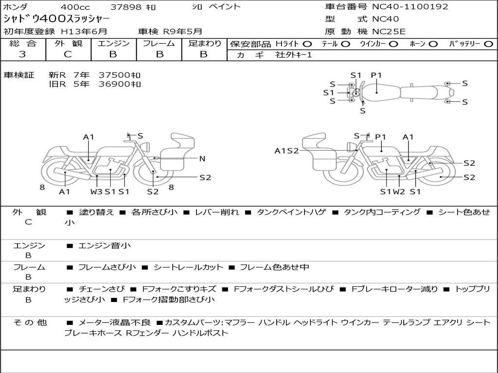 | Номер рамы / VIN | NC40-1100192 |